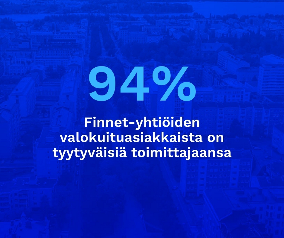 94 % Finnet-liiton paikallisyhtiöiden valokuituasiakkaista on tyytyväisiä kotinsa internetyhteyteen. Tämä käy ilmi Finnet-liiton syksyllä 2025 teettämästä tutkimuksesta, johon vastasi yli 4000 asunnonomistajaa.