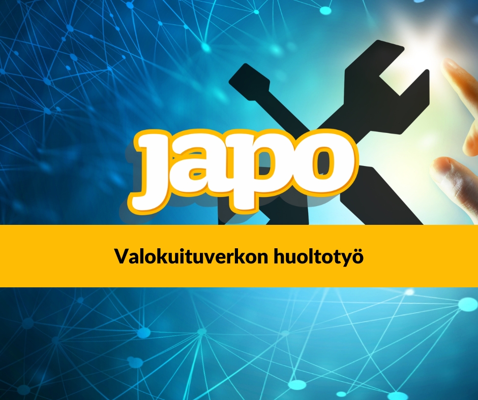 Huoltotyöt aiheuttavat katkoksia JAPOn toimittamiin valokuituyhteyksiin Alajärven keskustan ja Levijoen alueella klo 00.00–06.00 välisenä aikana.